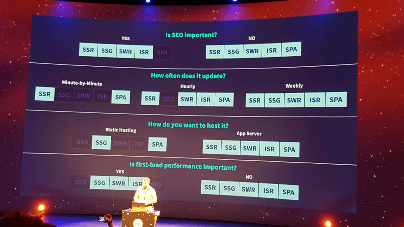 Il a ainsi listé les différents modes de rendu en commençant par le rendu statique, ce mode de rendu ne comporte qu’une seule page HTML sans aucun contenu dynamique.