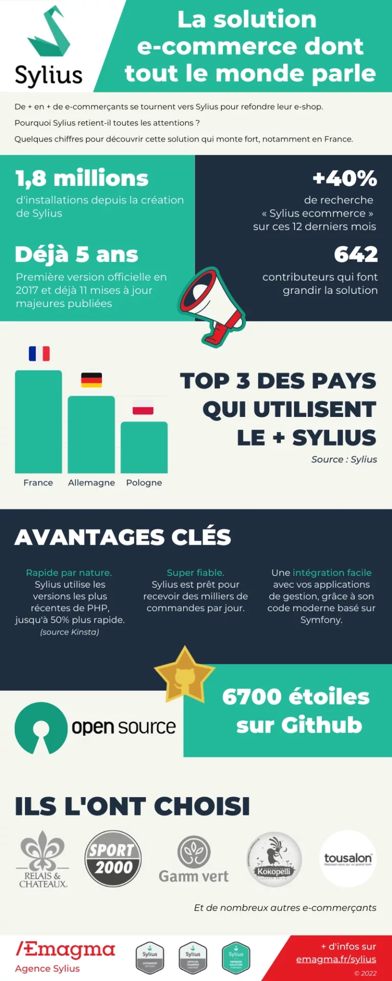 Revenons sur les informations présentées dans l’infographie Sylius.